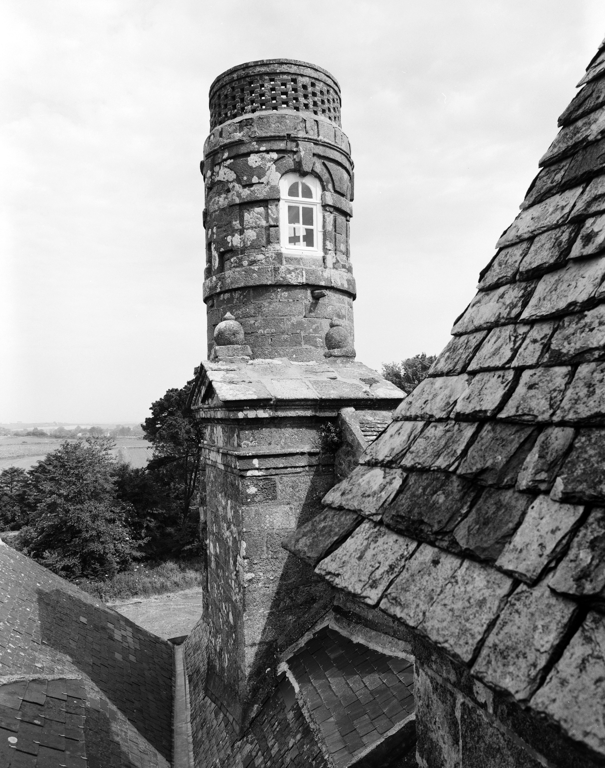 Château : tourelle vue du sud à partir de la tour d'angle (état en 1986)Immatriculation