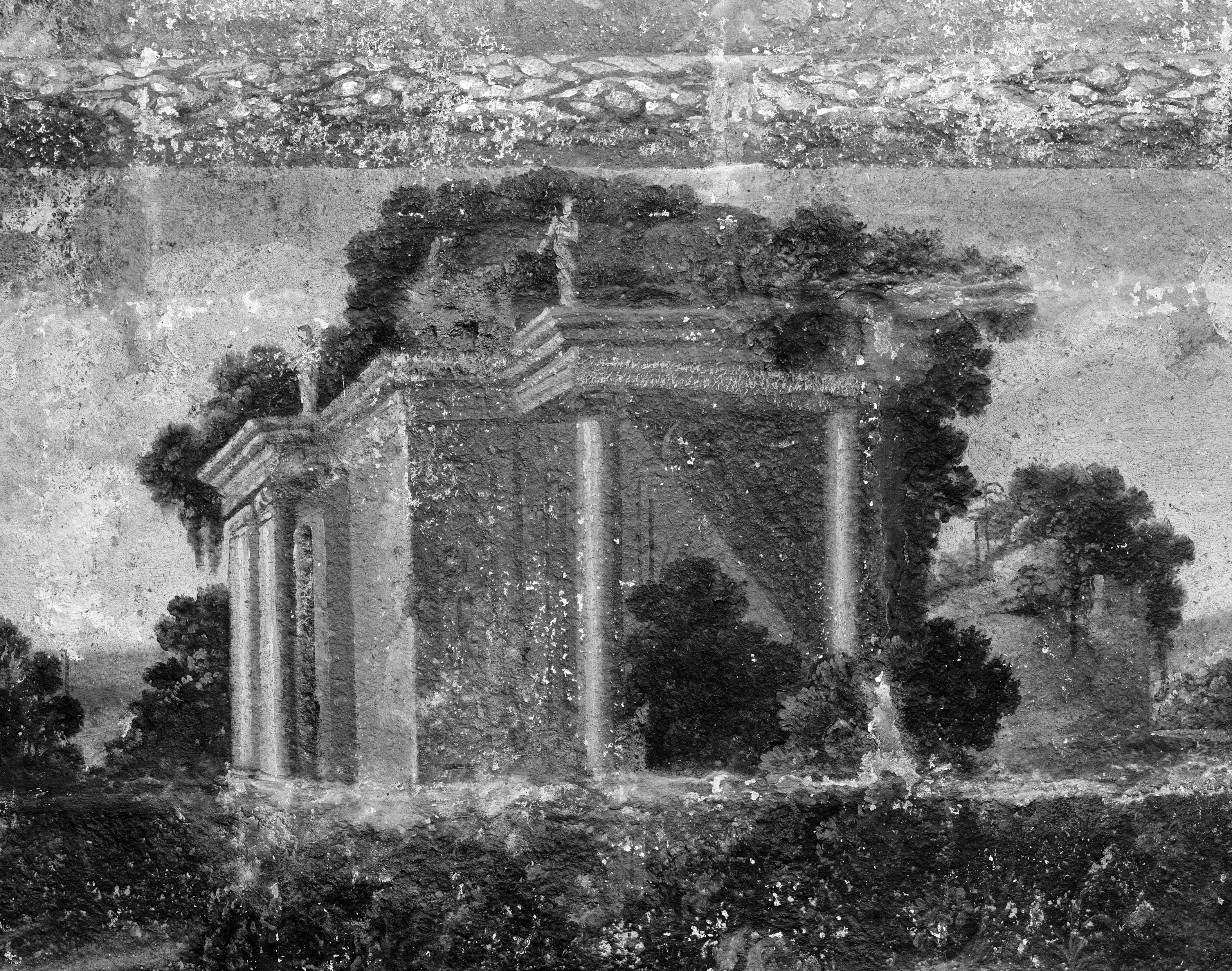 Peinture monumentale 3 (trumeau), Paysage avec un temple : le temple (état en 1986)Immatriculation