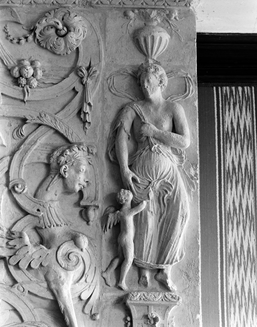 1er étage, pièce 2 : cheminée, détail personnage féminin droitImmatriculation