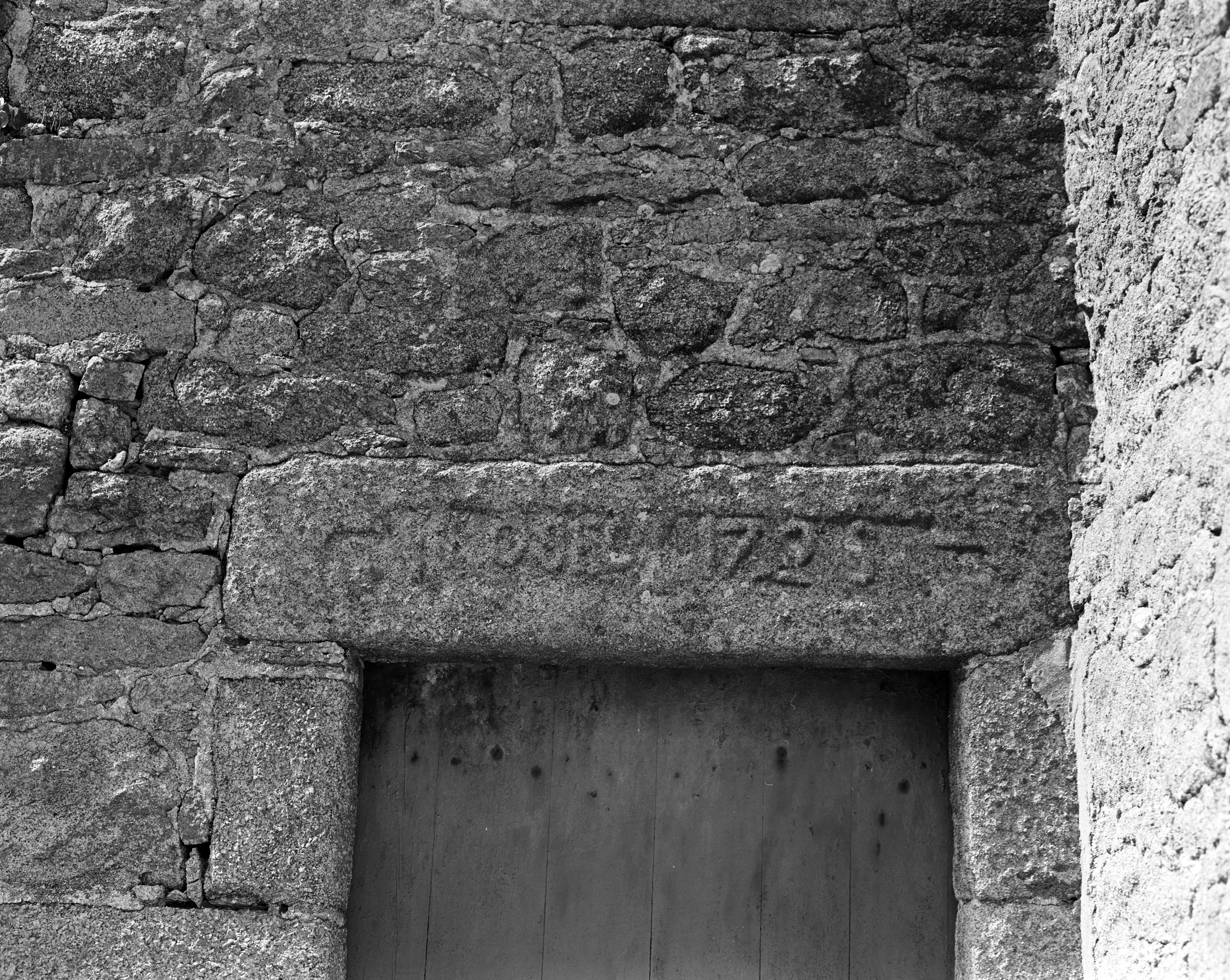 Maison, élévation sud : inscription sur le linteau (état en 1986)Immatriculation
