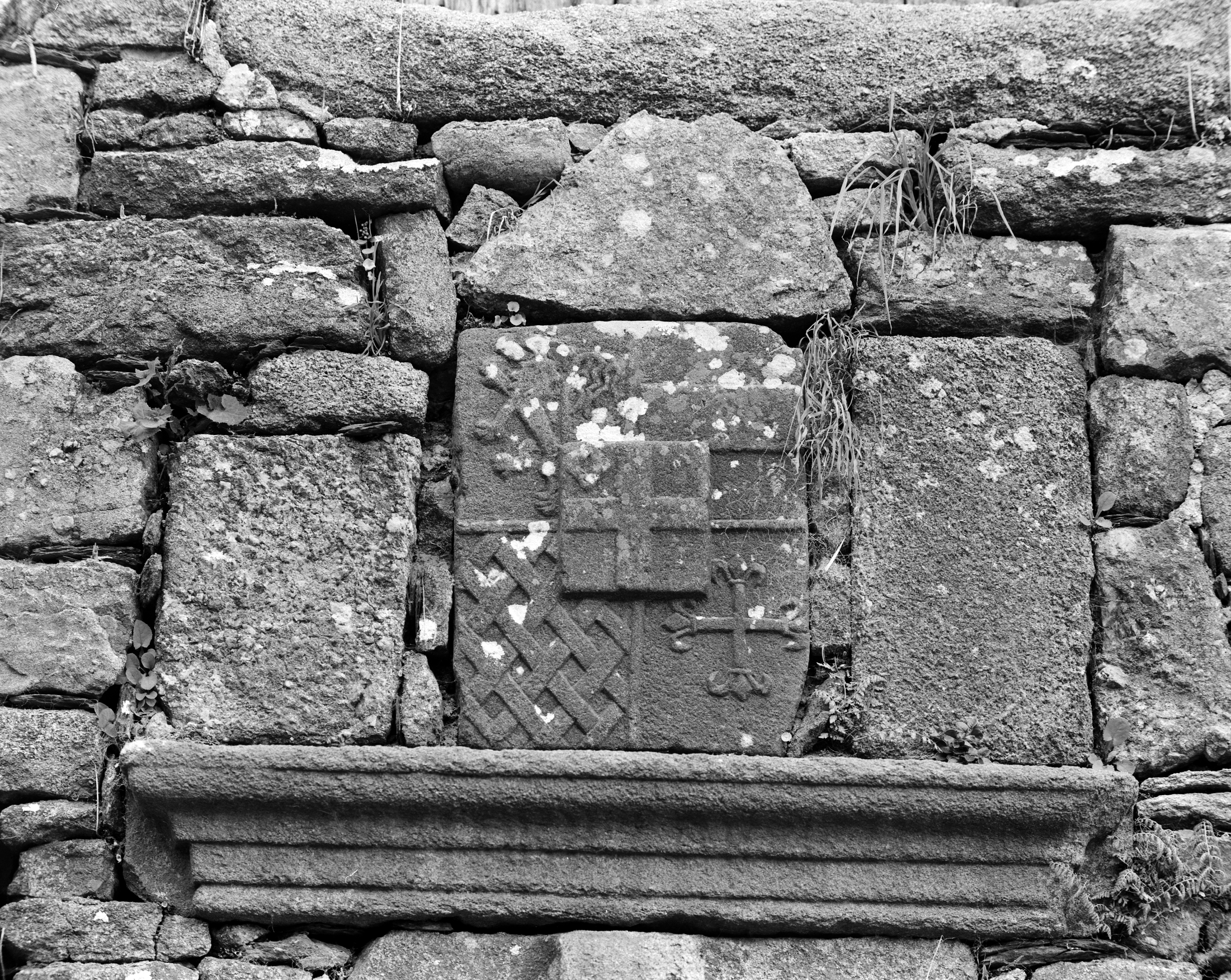 Manoir, élévation nord : pierre armoriée au-dessus de la porte (état en 1986)Immatriculation