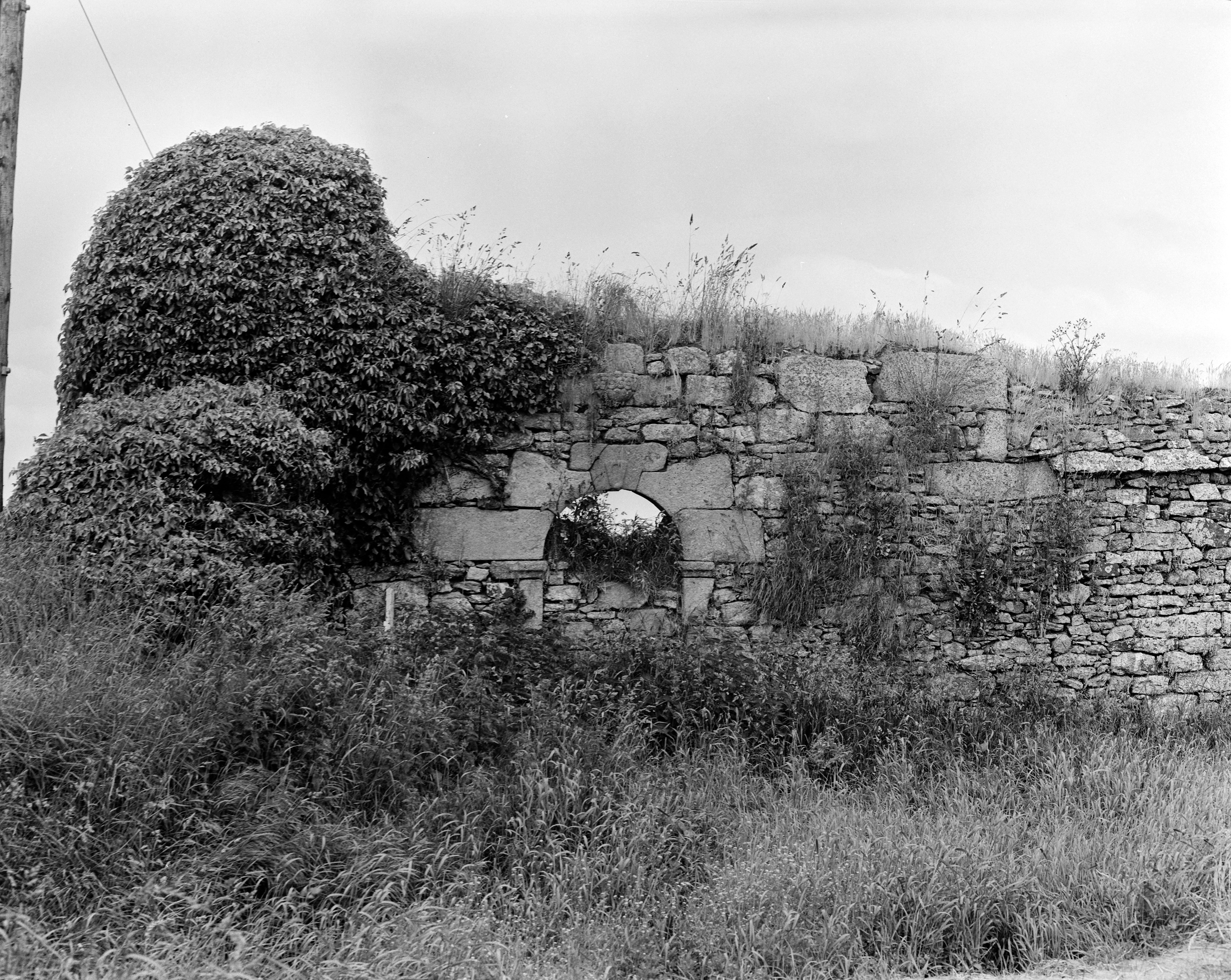 Manoir : vestiges du mur ouest de la chapelle vus de l'ouest (état en 1986)Immatriculation
