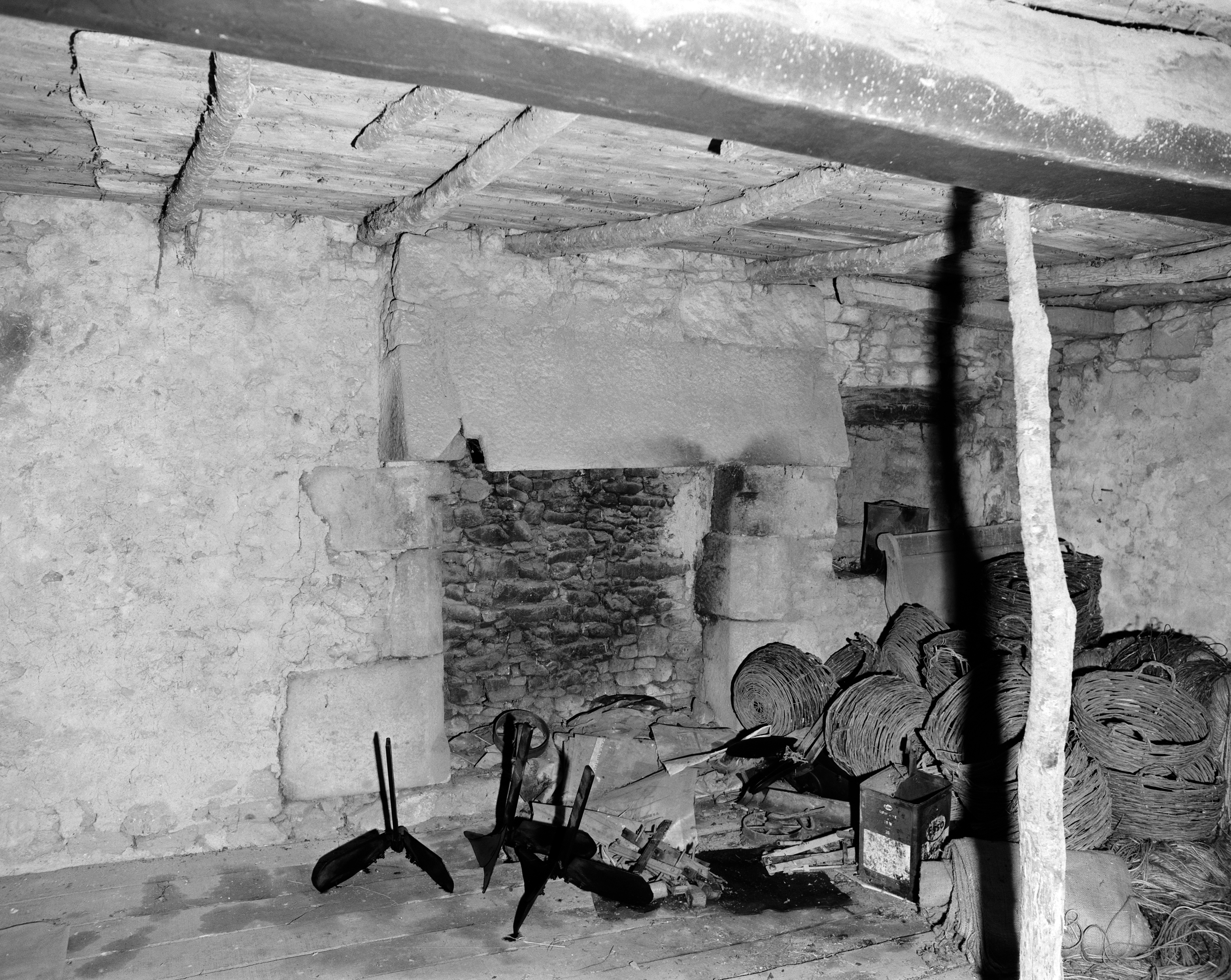 Ferme, 1er étage,pièce 3 : vue générale de la pièce vers la cheminée (état en 1986)Immatriculation