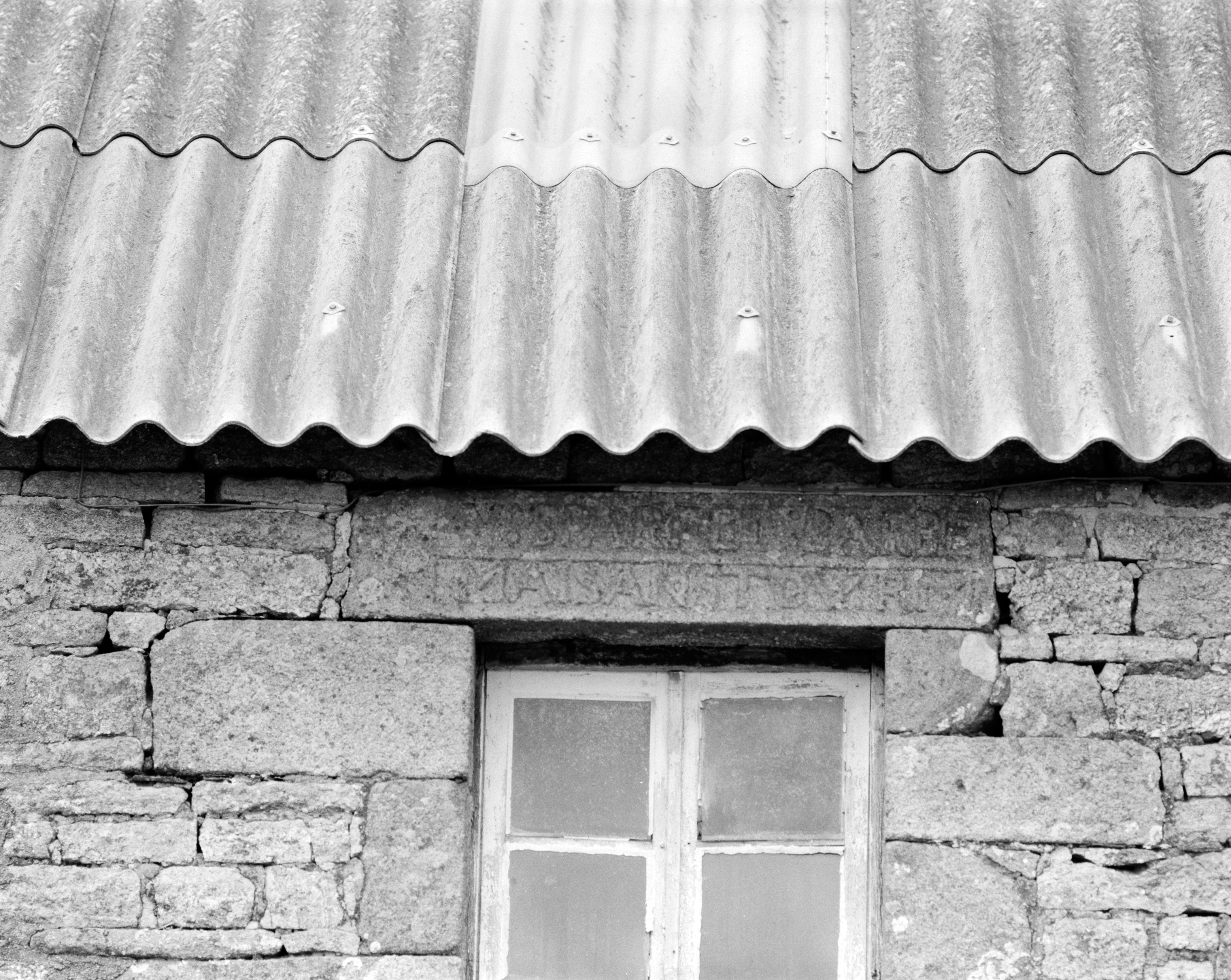 Ferme, élévation sud, 1er étage : inscription sur le linteau de la fenêtre (état en 1986)Immatriculation