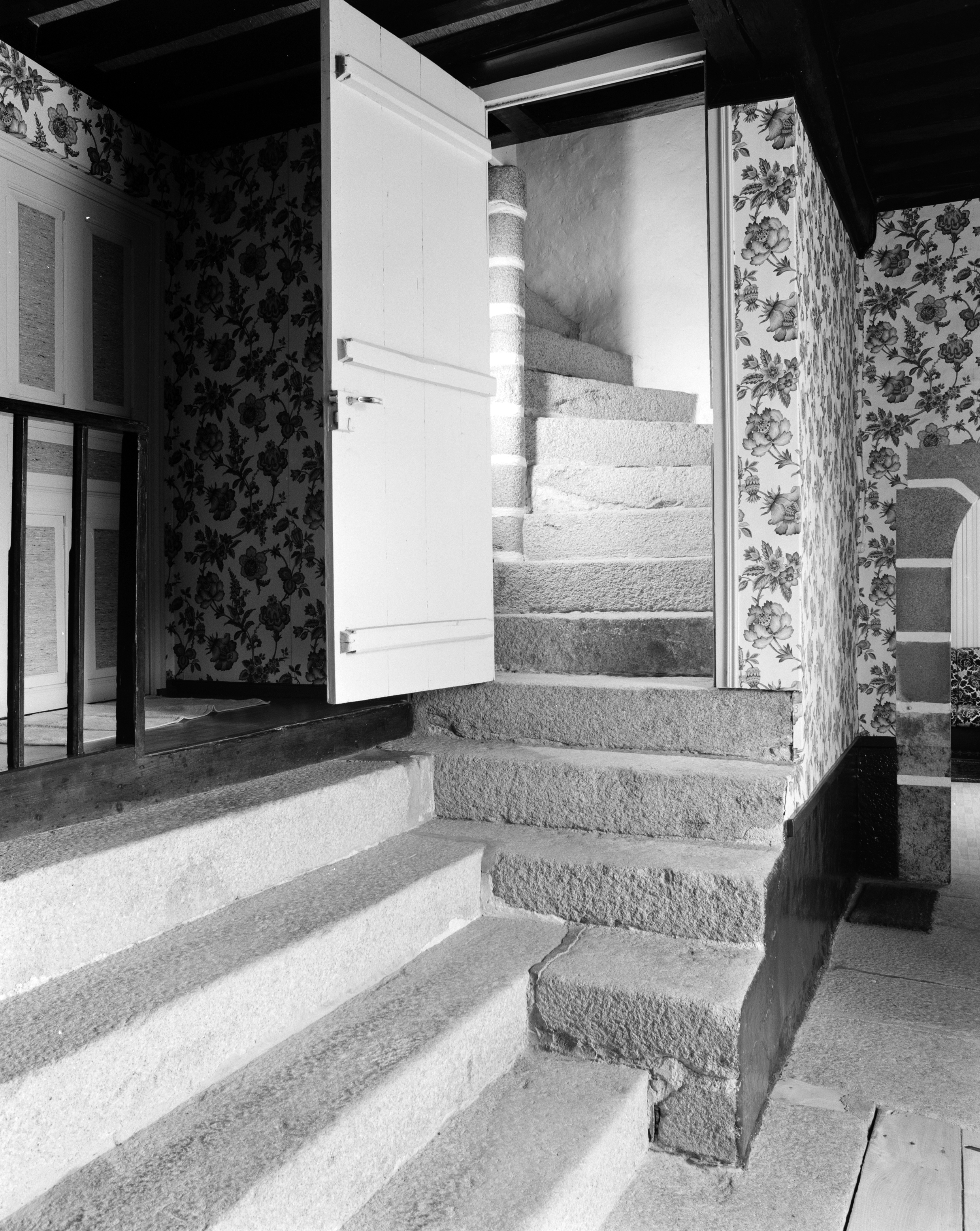 Manoir, 1er étage : départ du second escalier vers le comble (état en 1986)Immatriculation