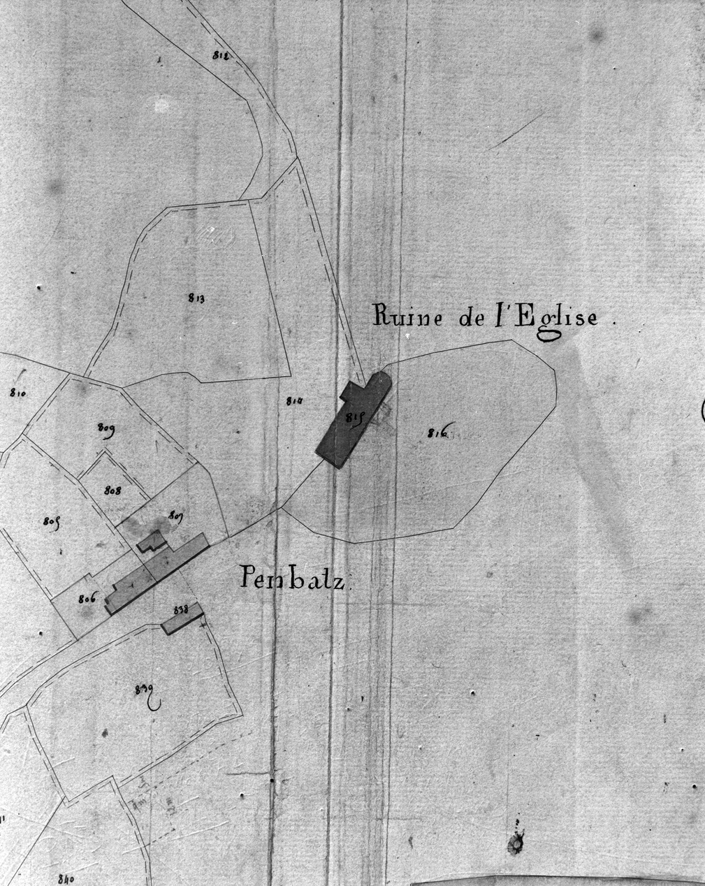 Cadastre ancien 1846, ruines de l'église, section C, feuille 2Immatriculation