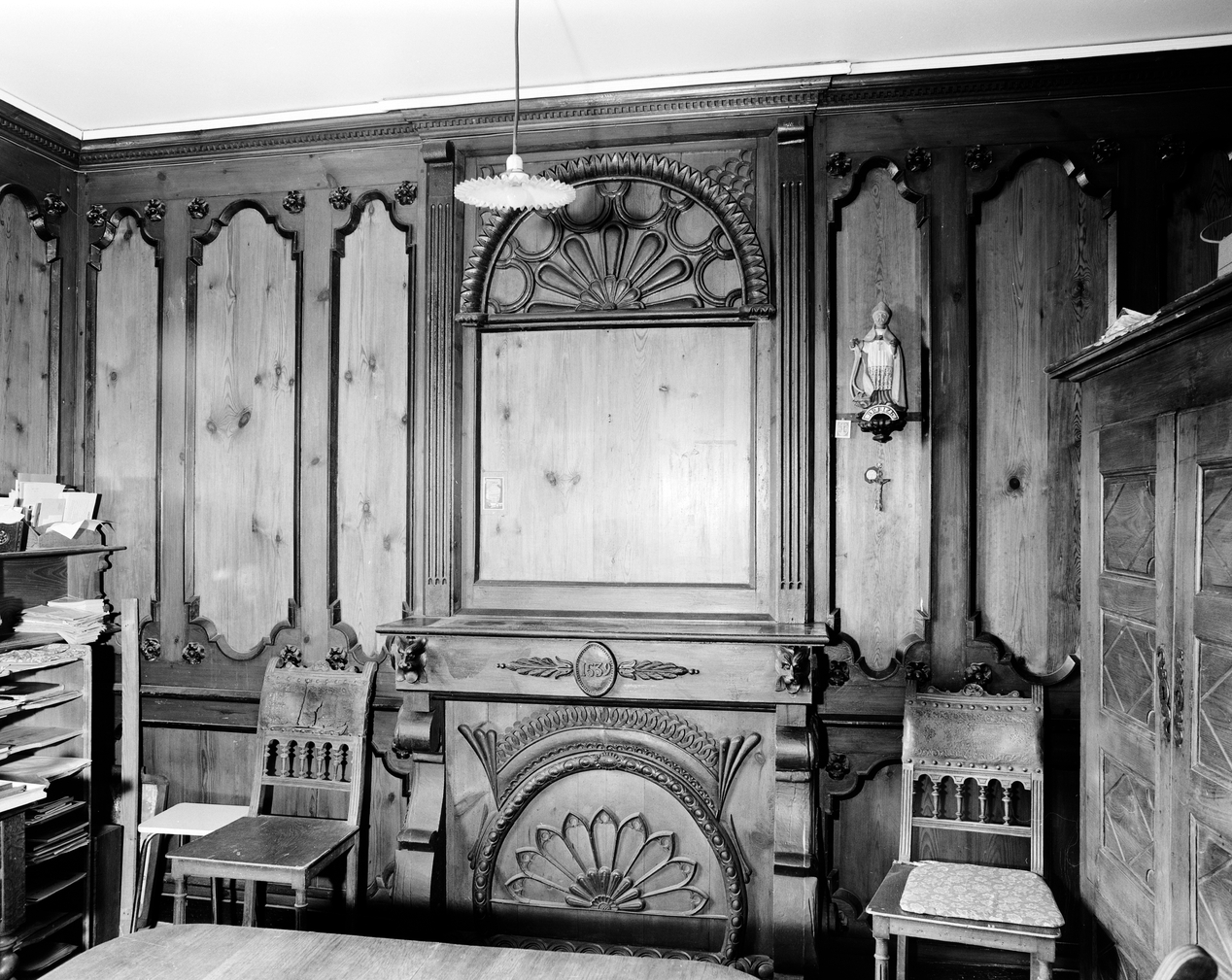Rez-de-chaussée, pièce ouest, cheminée et lambris au-dessusImmatriculation