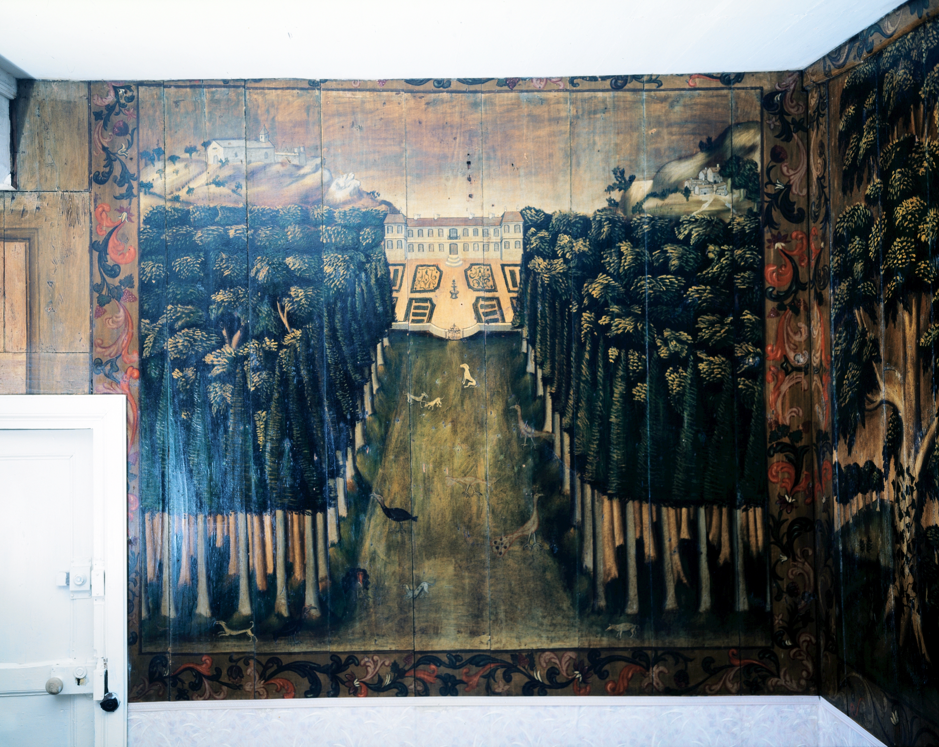 Maison : peintures sur bois, panneau C (château)Immatriculation