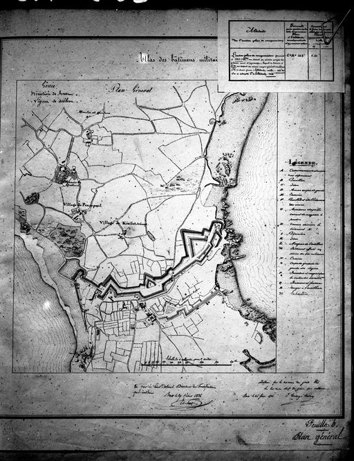 Atlas des bâtiments militaires des places de France : établissements de la presqu'île de Quélern : plan général, 1836Immatriculation
