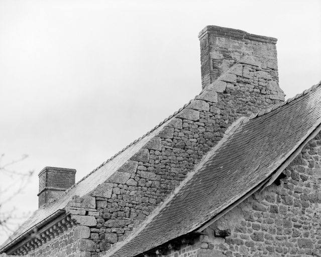 Crossette de pignon sculptée à droite de la façade, vue de détail.Immatriculation