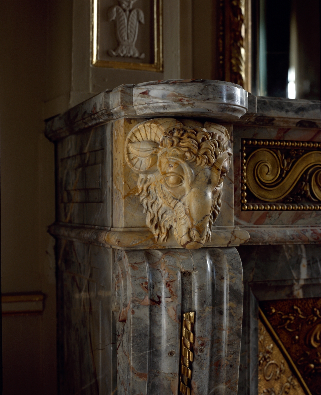 Grand salon, cheminée, tête de bélier.Immatriculation