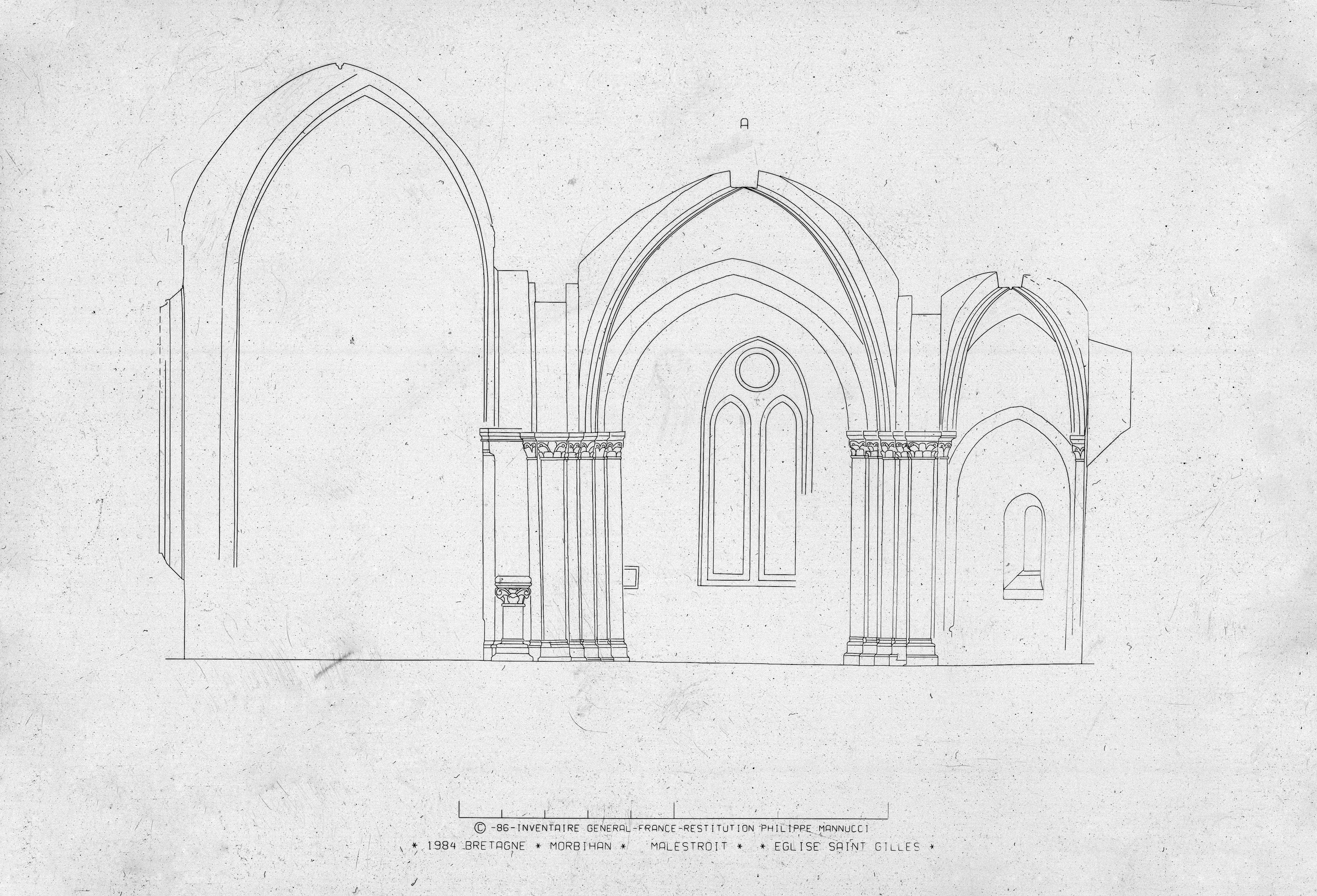 Transept : coupe transversale nord-sud au niveau de l'ancienne croisée du transept, relevé photogrammétrique (état en 1986)Immatriculation