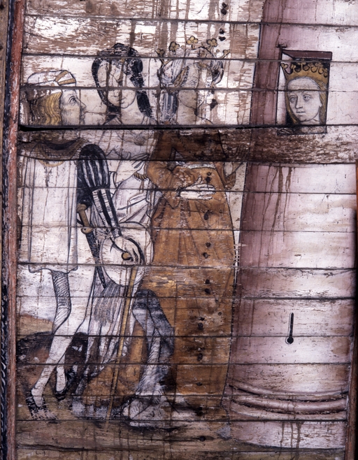 Peintures (8) : vie de sainte Catherine, anges, saint Pierre, saint Jean, chapelle Notre-Dame-de-Carmes (Neulliac),
