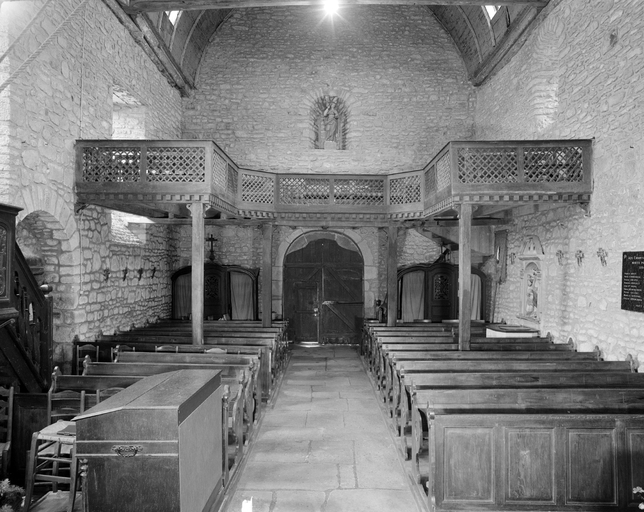 Vue intérieure, prise du choeur vers la nef, enquête de 1986Immatriculation