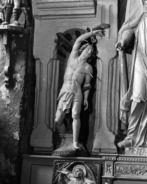 Statue (petite nature, d'applique) : saint Sébastien, église paroissiale Sainte-Agnès (Tréfumel),