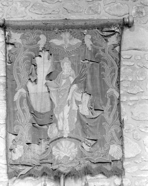 Bannière : sainte Agnès, Crucifixion, église paroissiale Sainte-Agnès (Tréfumel),