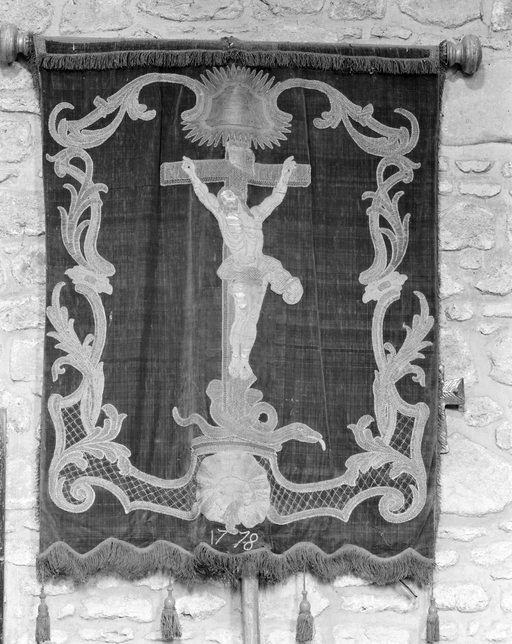 Bannière : sainte Agnès, Crucifixion, église paroissiale Sainte-Agnès (Tréfumel),