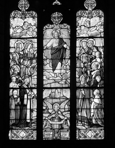 Ensemble de 14 verrières à personnages et d'un oculus,