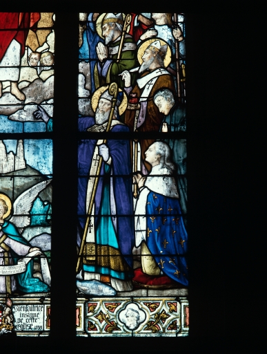 Verrière 3, lancette droite : Louis XVI, saint Corentin, Lamennais (?), saint Augustin, saint évêqueImmatriculation