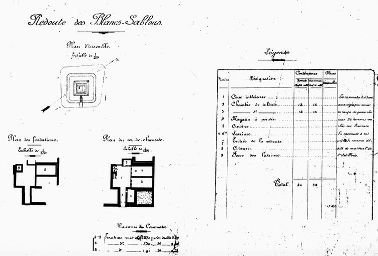 Plan de la redoute des Blancs Sablons, 2e moitié 19e siècleImmatriculation