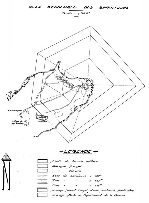 Plan d'ensemble des servitudes du fort et des batteries de l'île Longue (ouvrages détruits en 1966)Immatriculation