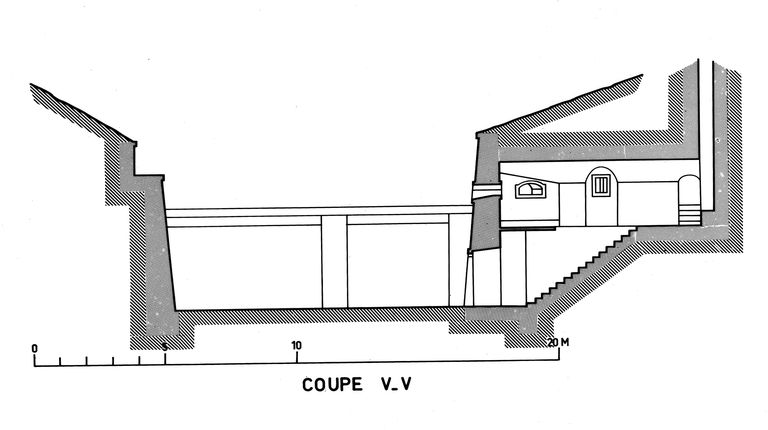 Coupe V-V de l'entrée principale et locaux annexes (J - K) (Lecoq)Immatriculation