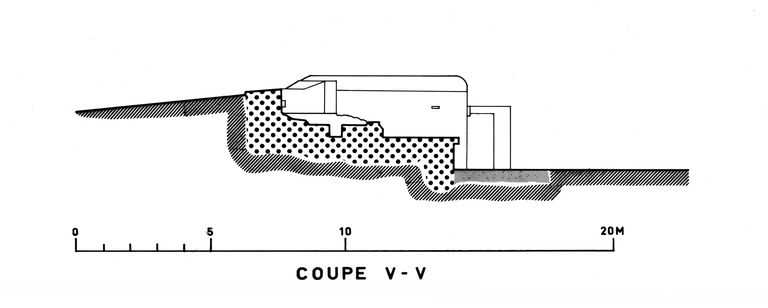 Coupe V-V d'un emplacement pour canon de 24 cm sur affût à pivot avant de la batterie de TremetImmatriculation