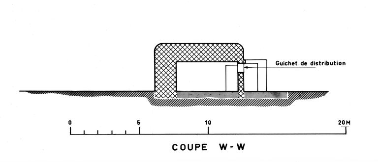 Coupe W-W d'une soute de la batterie de TremetImmatriculation