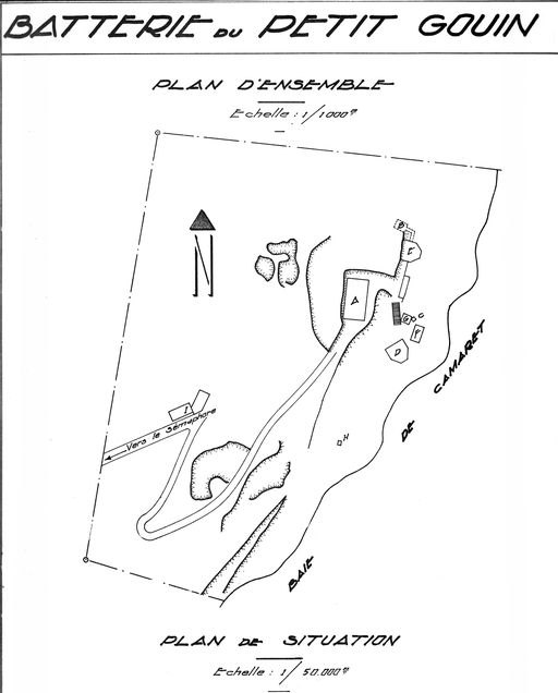 Plan d'ensemble de la batterie du Petit Gouin : réduit de batterie de côte, batteries et bunkersImmatriculation