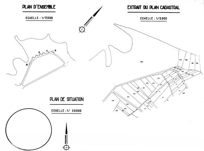 Extrait du plan cadastral et plan d'ensemble de la batterie de KerviniouImmatriculation