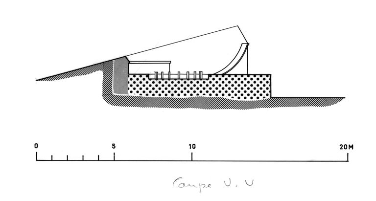 Coupe d'une des quatre plate-formes de pièce de la batterie de KerviniouImmatriculation