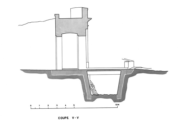 Coupe de la porte d'entrée monumentale et du fossé du fort de Lanvéoc (1879)Immatriculation