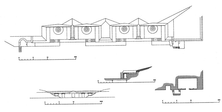 Plan, coupes et élévation de la batterie de 4 canons de 100 mm modèle 1881 TR de la pointe des CapucinsImmatriculation