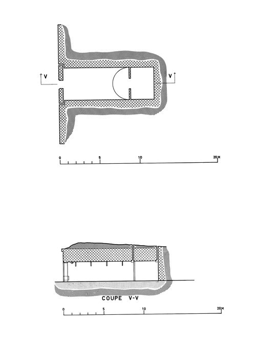 Plan et coupe V-V d'une alvéole (localisation approximative : batteries des Capucins)Immatriculation
