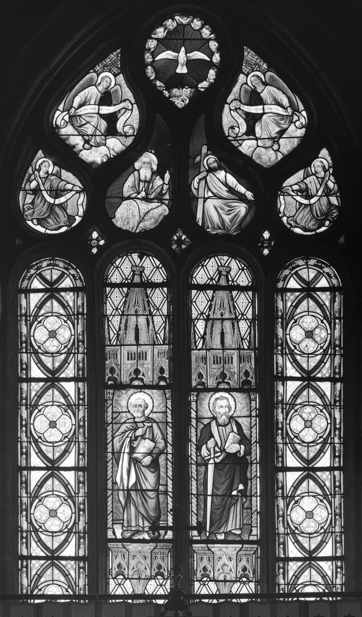 Verrière à personnages de la maîtresse-vitre : Saint Pierre, Saint Paul, église paroissiale Saint-Pierre (Plougar),