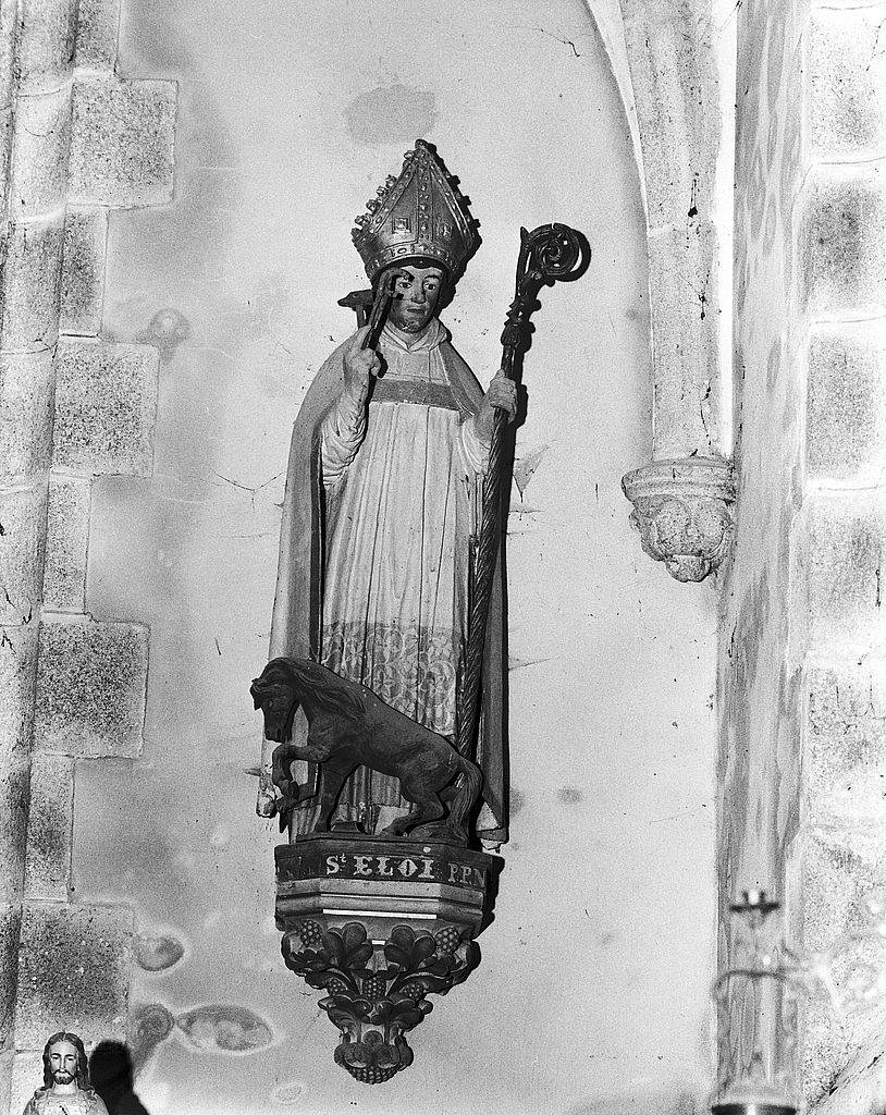 Statue (d'applique, grandeur nature) : saint Eloi, église paroissiale Saint-Eloi (Mespaul),