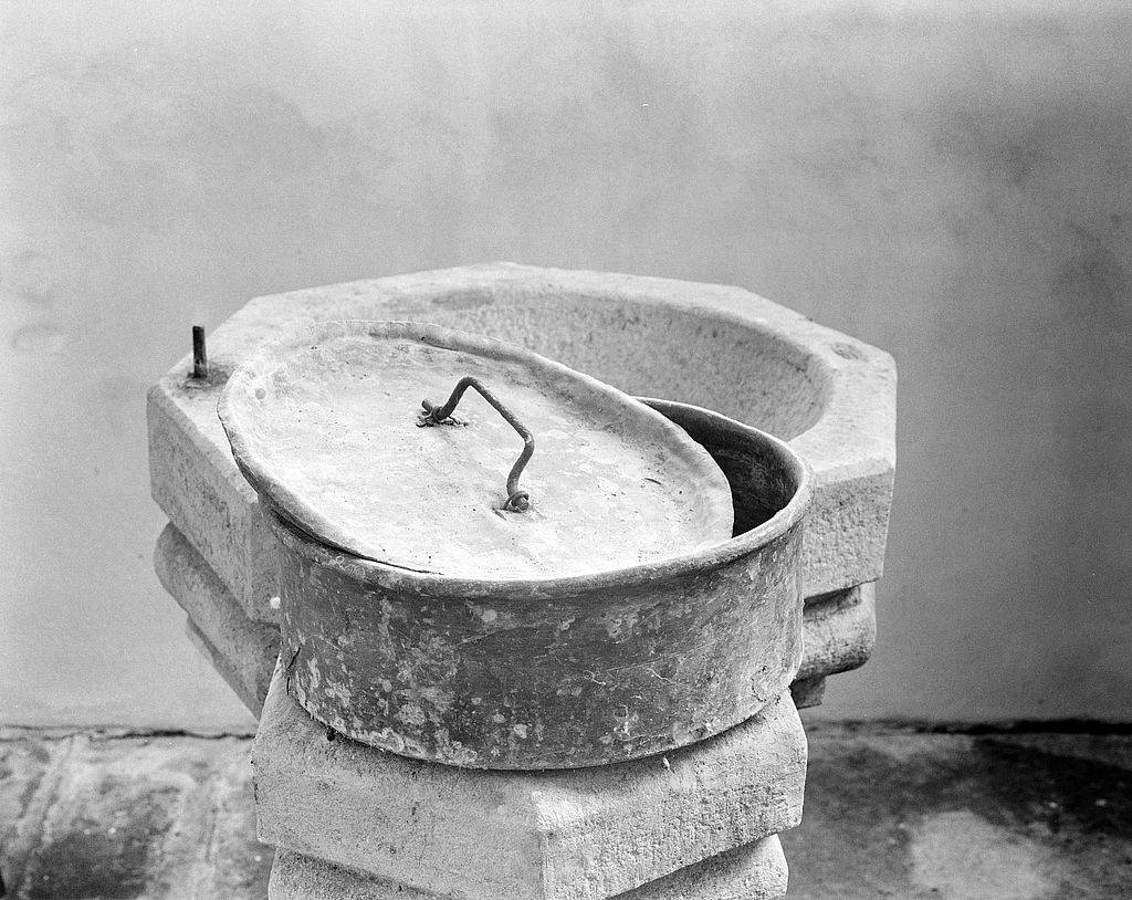 Cuve baptismale, détail du bassin de plombImmatriculation