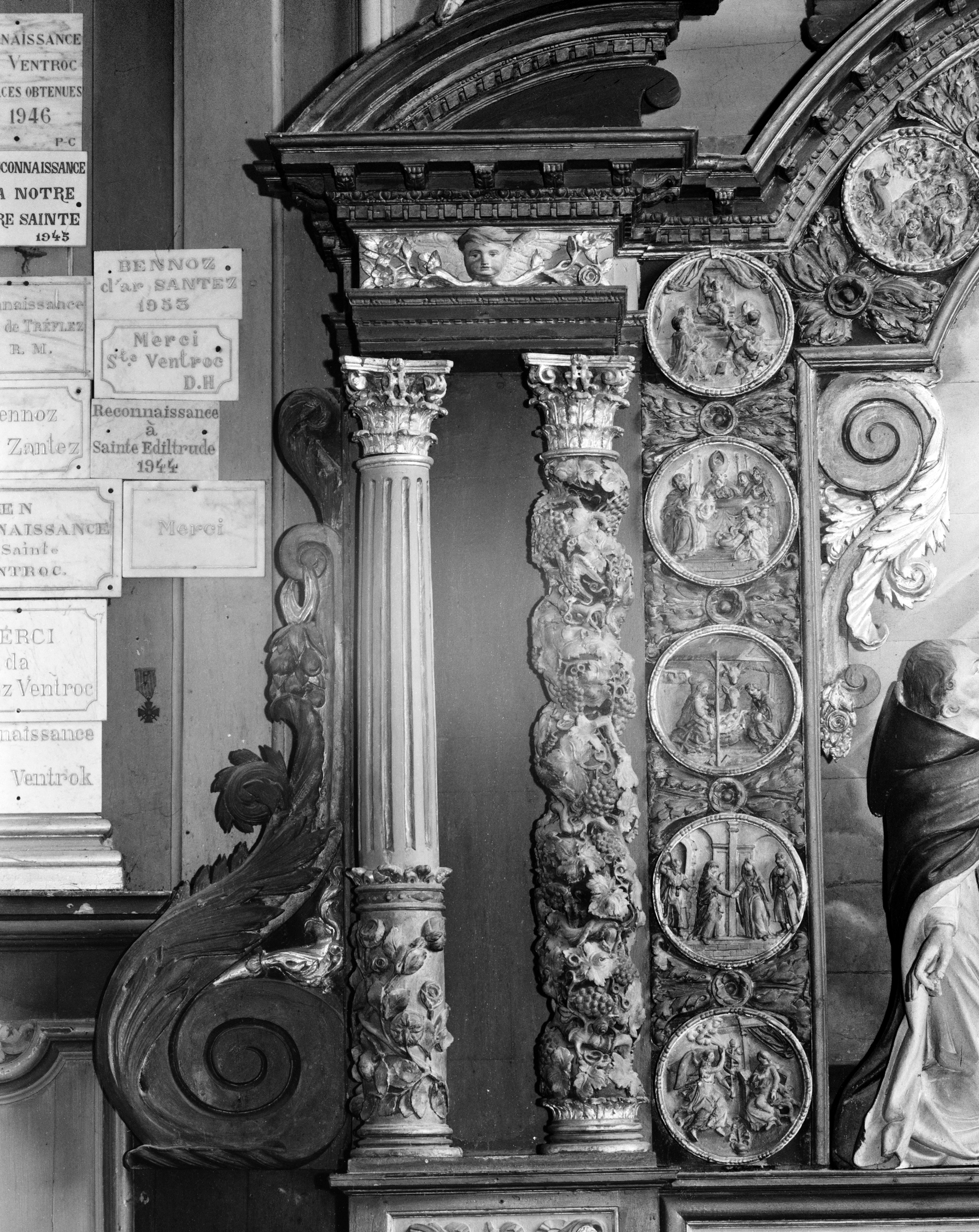 Retable : les colonnettes de gauche (état en 1987)Immatriculation