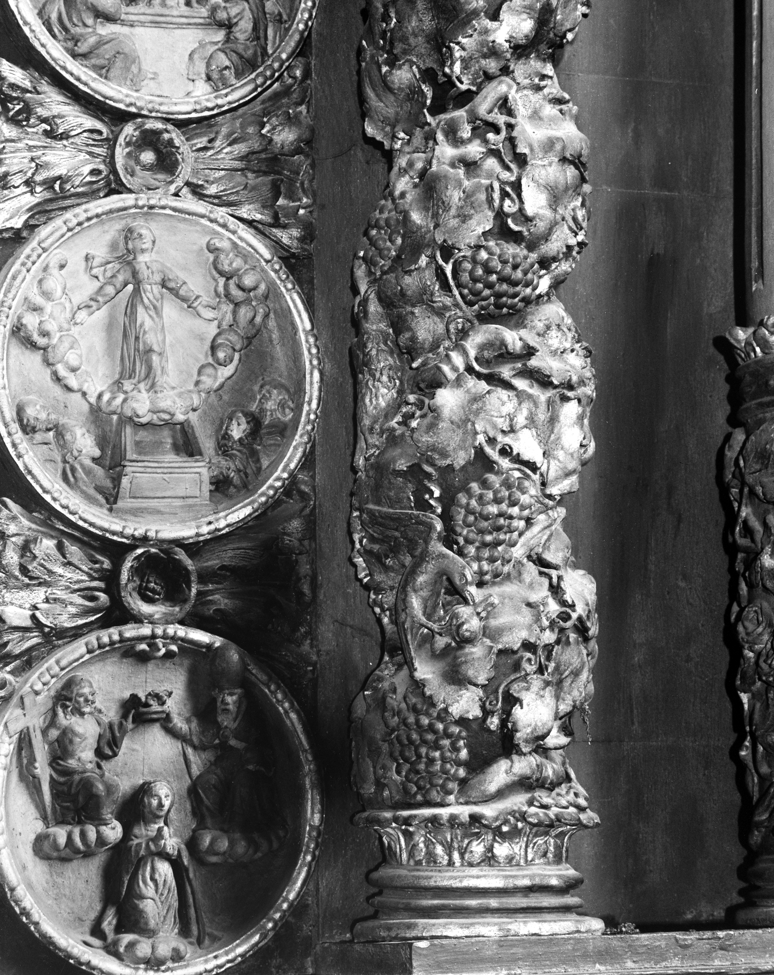 Retable : partie inférieure de la colonnette de droite (état en 1987)Immatriculation