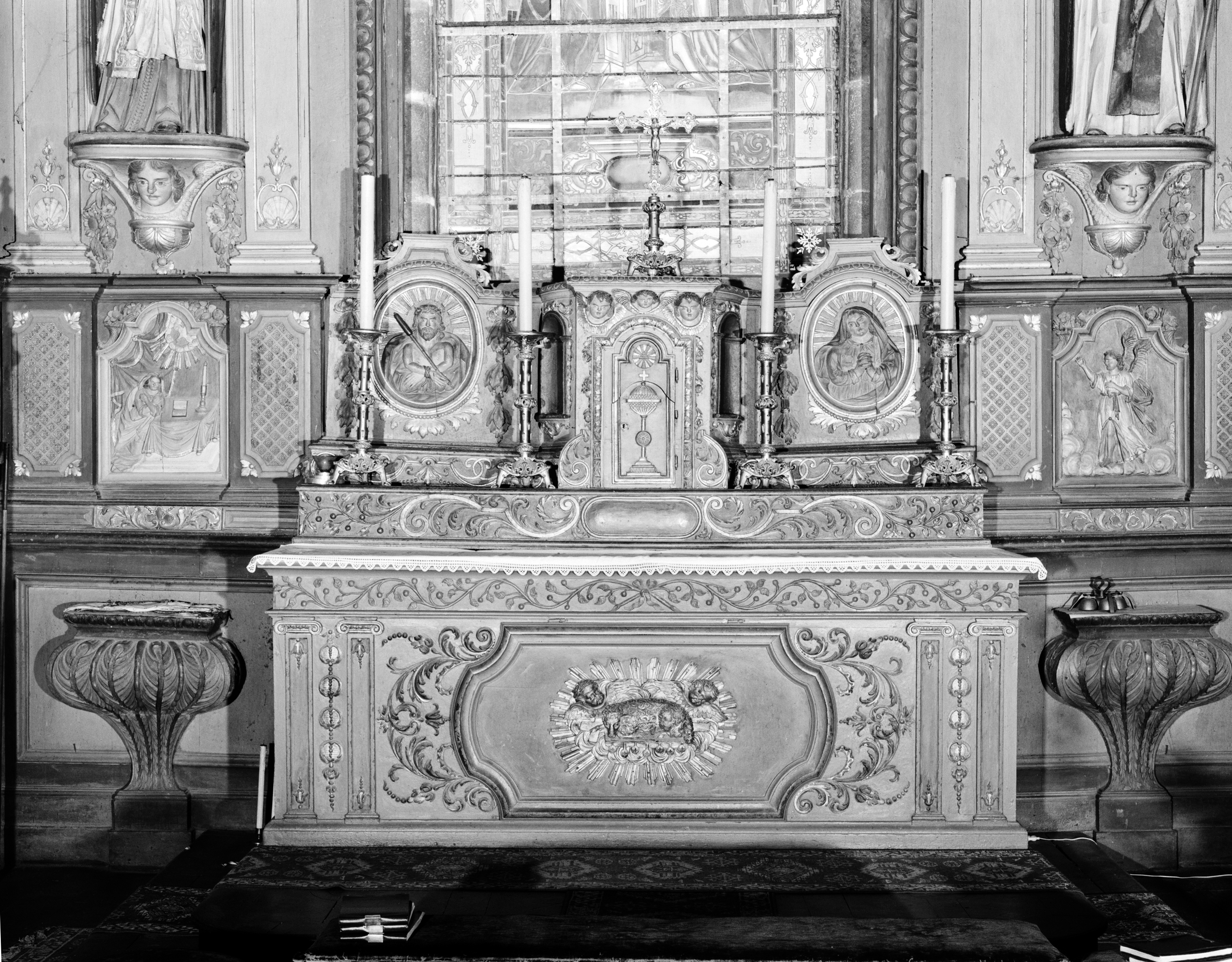Ensemble du maître-autel : autel, tabernacle, 2 gradins d'autel, église paroissiale Sainte-Édiltrude (Tréflez),