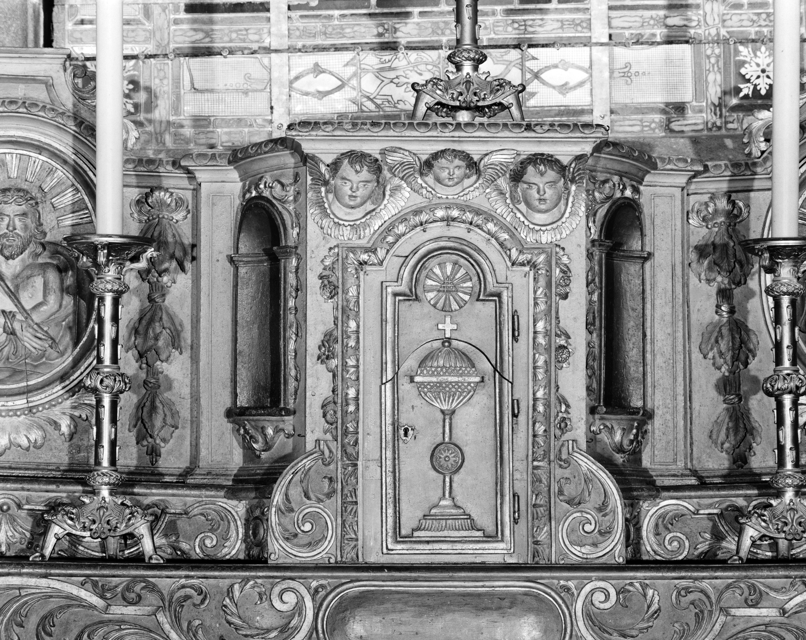 Ensemble du maître-autel : autel, tabernacle, 2 gradins d'autel, église paroissiale Sainte-Édiltrude (Tréflez),
