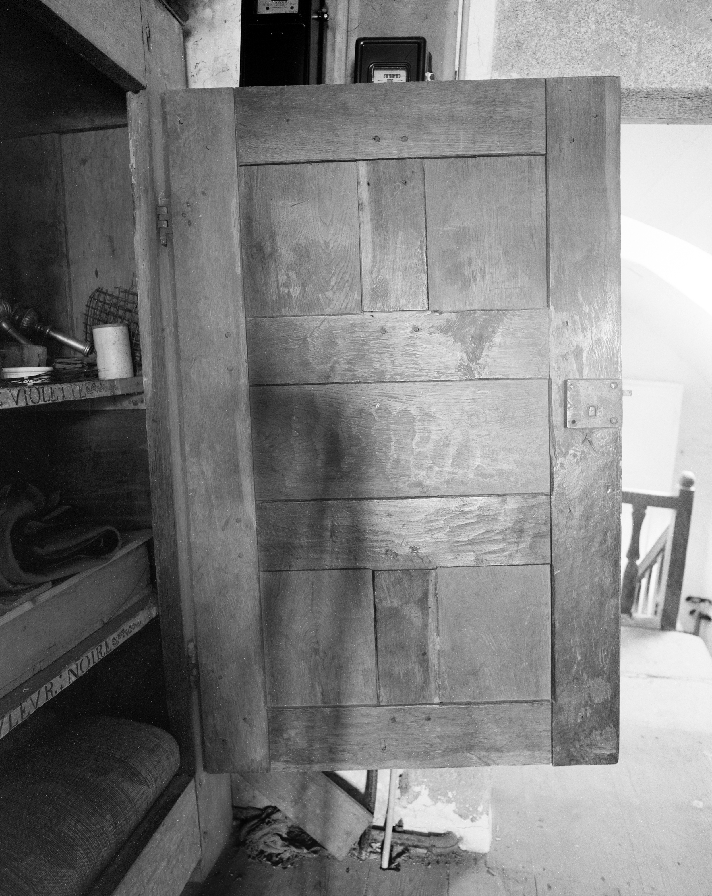 Armoire de sacristie, battant droit : revers (état en 1987)Immatriculation