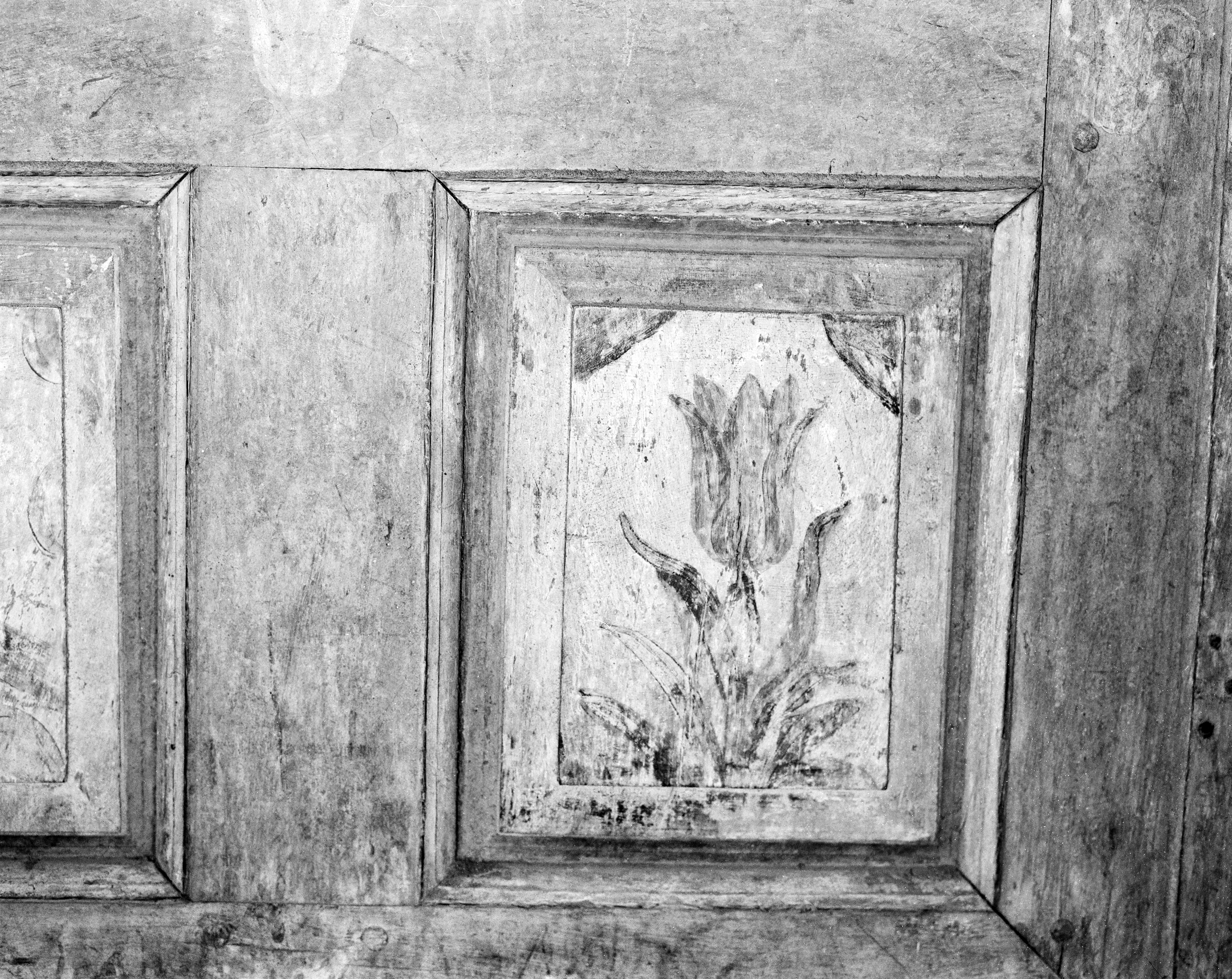 Armoire de sacristie, battant droit : décor du panneau inférieur droit (état en 1987)Immatriculation