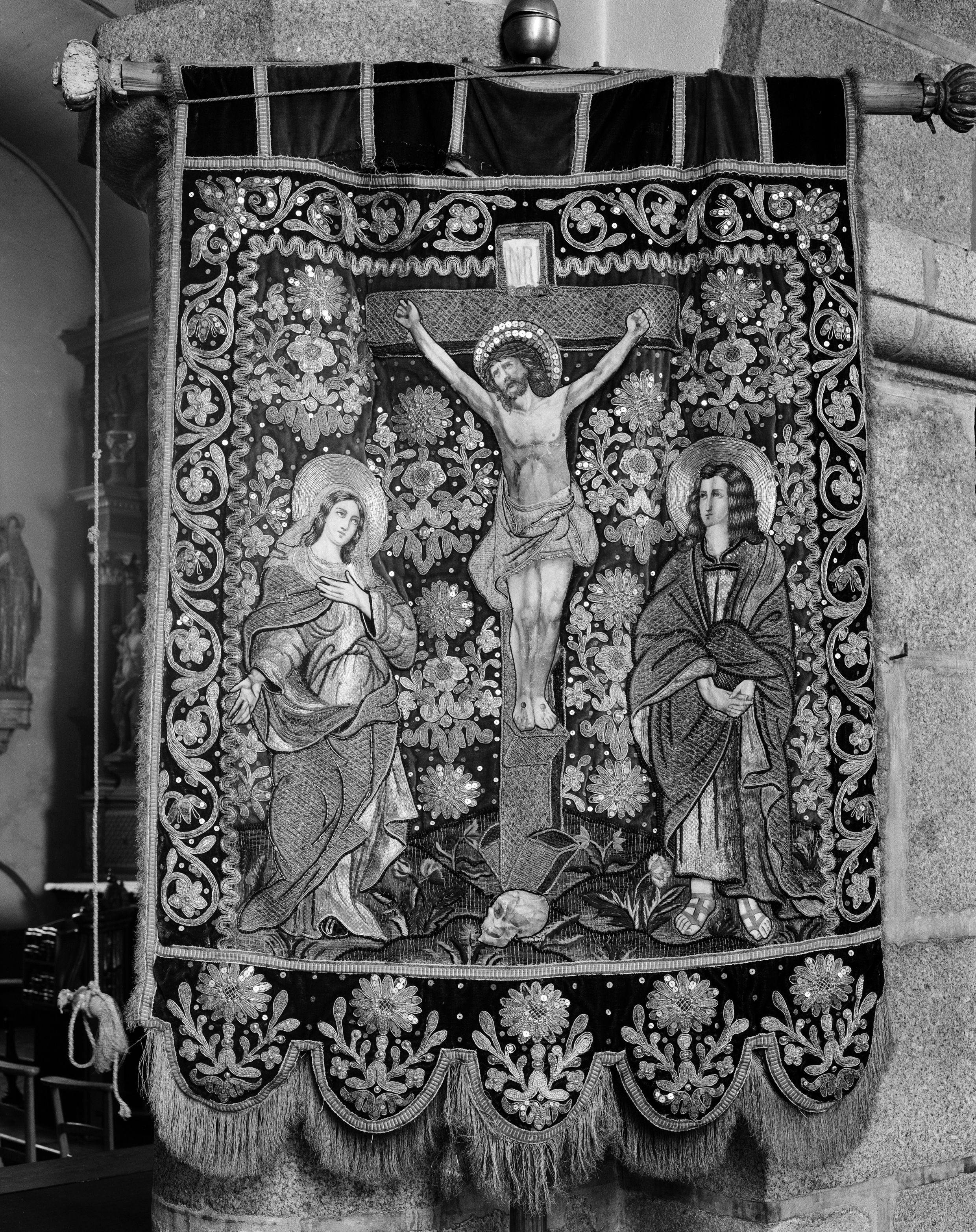 Bannière de procession paroissiale : face portant le Calvaire (état en 1987)Immatriculation