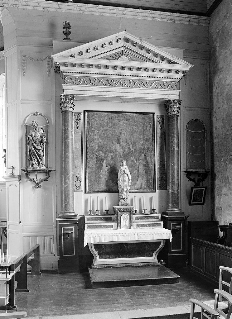 Autels (2), retables (2), tabernacles (2), gradins d'autel (4) (autel secondaire, autel tombeau, retable architecturé) : du Rosaire, de la Vierge, église paroissiale Saint-Pierre (Sibiril),