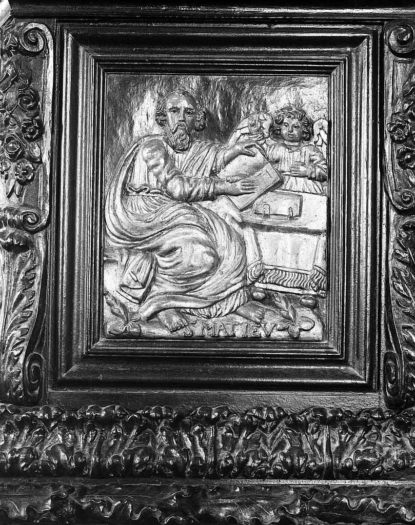 Détail de la cuve, panneau représentant saint MathieuImmatriculation