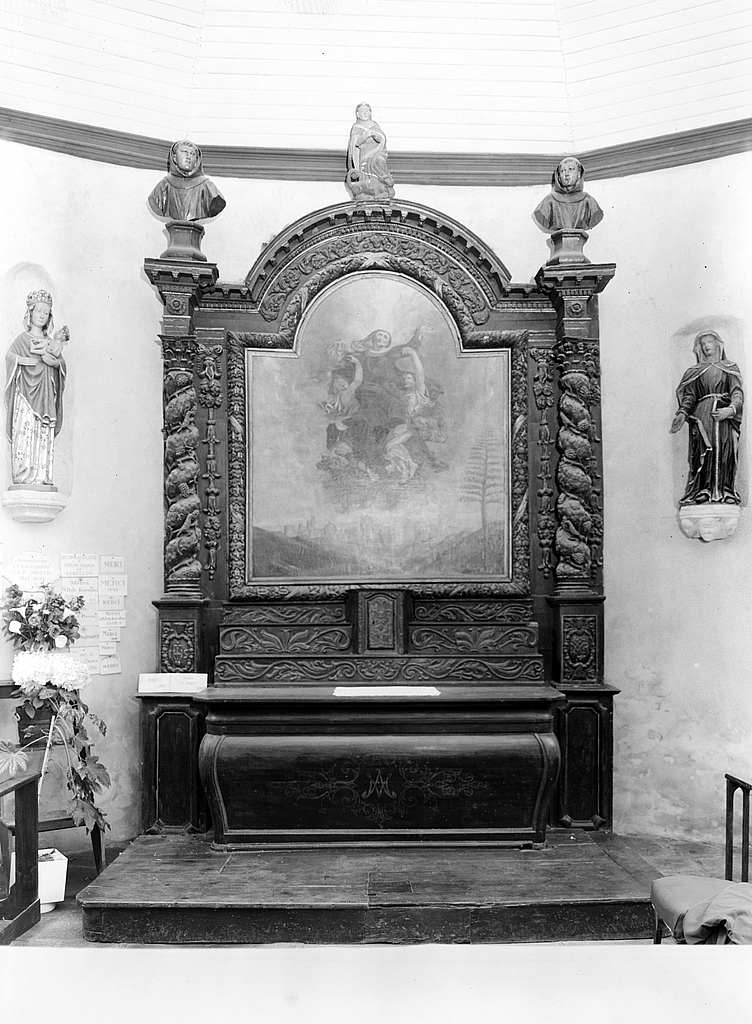 Autel, retable, tabernacle, gradins d'autel (2), bustes (2) (maître-autel, autel tombeau, retable architecturé), chapelle Notre-Dame (Plouénan),