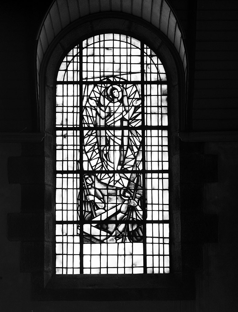 Verrière 9 : vies du christ et de la vierge, verrière historiée, église paroissiale Saint-Colomban (Plougoulm),