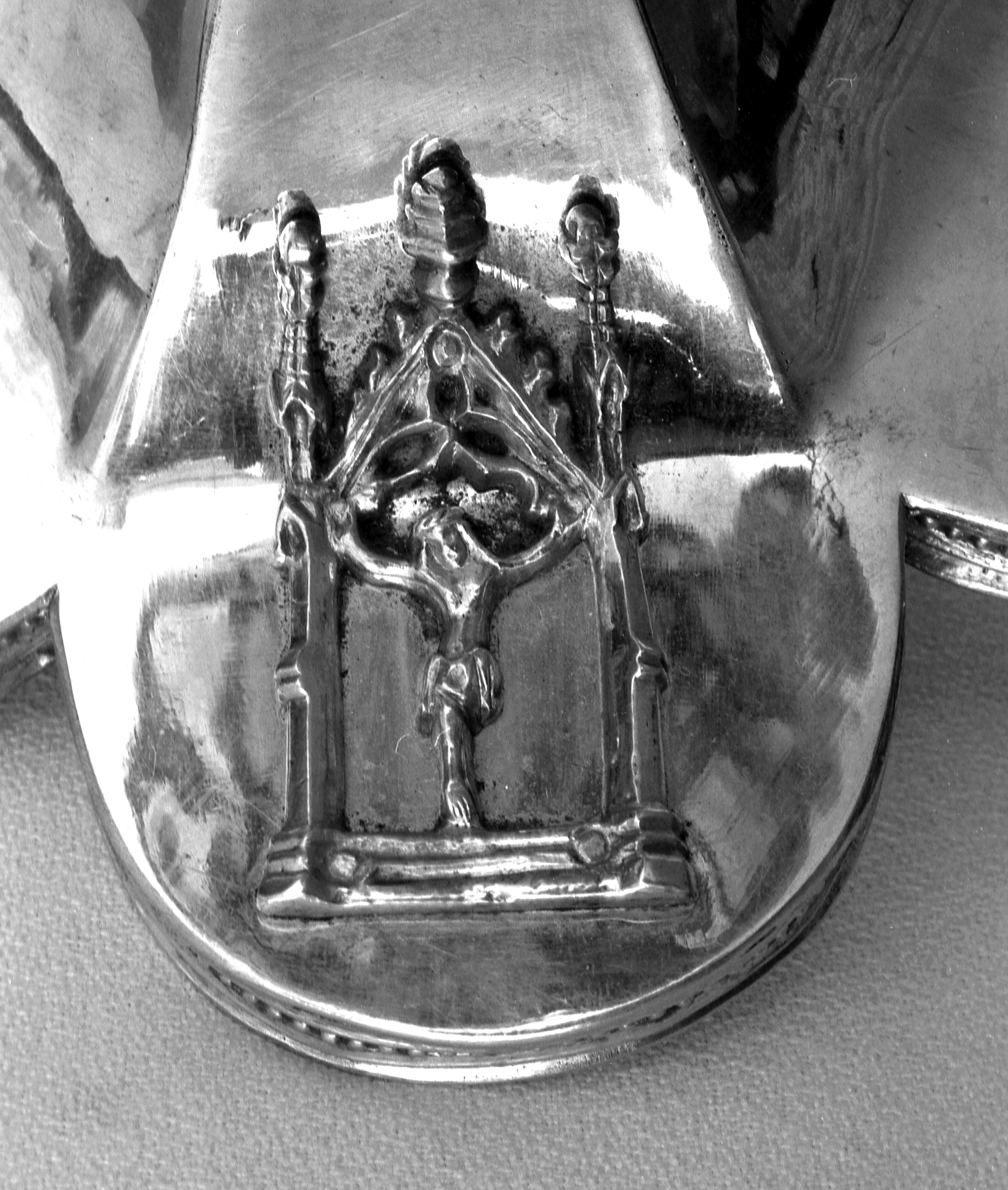 Calice, décor sur le dessus du pied : Christ en croix (état en 1987)Immatriculation