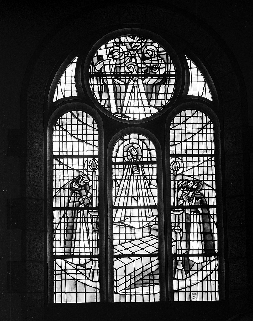Verrière 9 : vies du christ et de la vierge, verrière historiée, église paroissiale Saint-Colomban (Plougoulm),